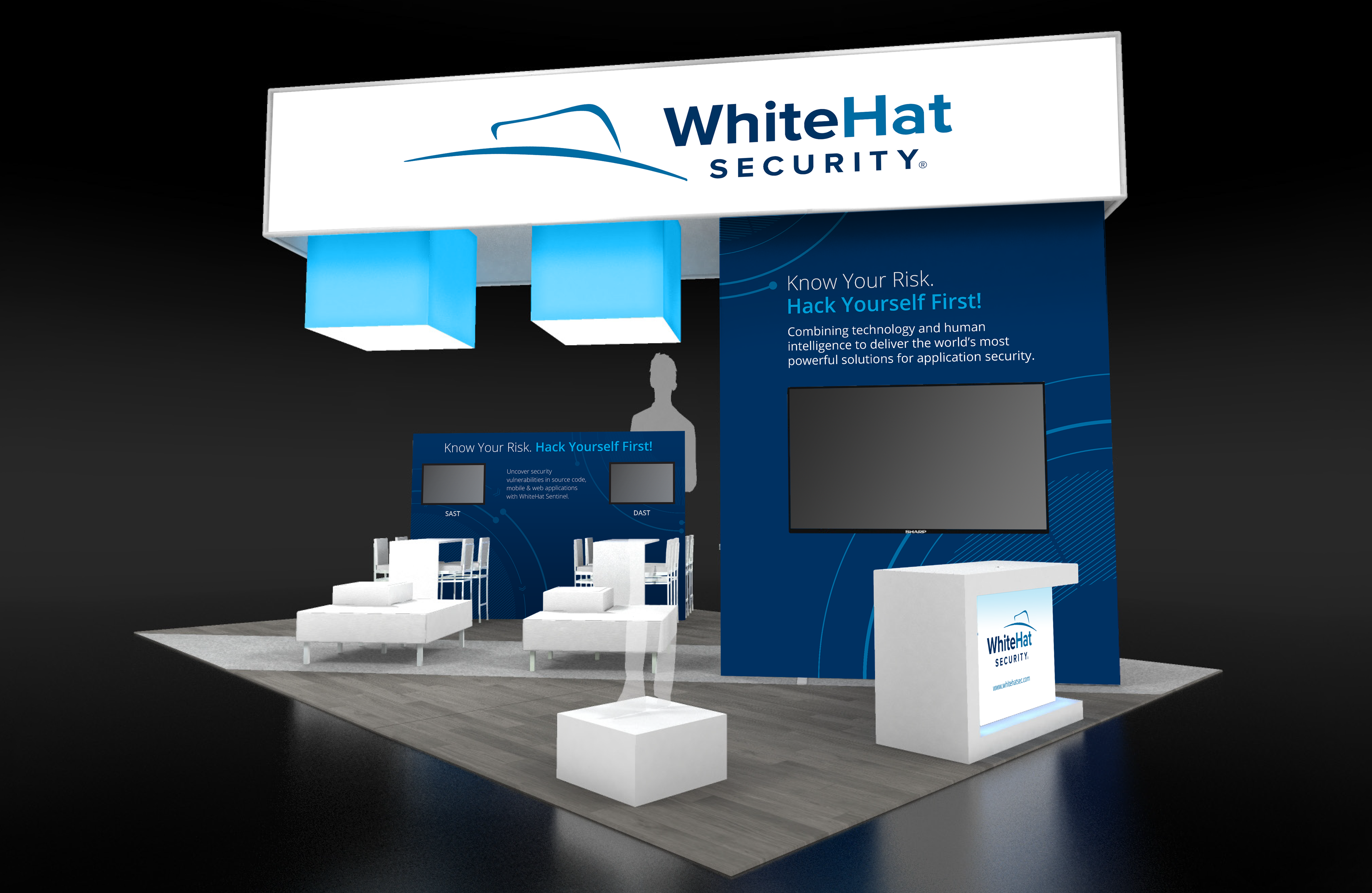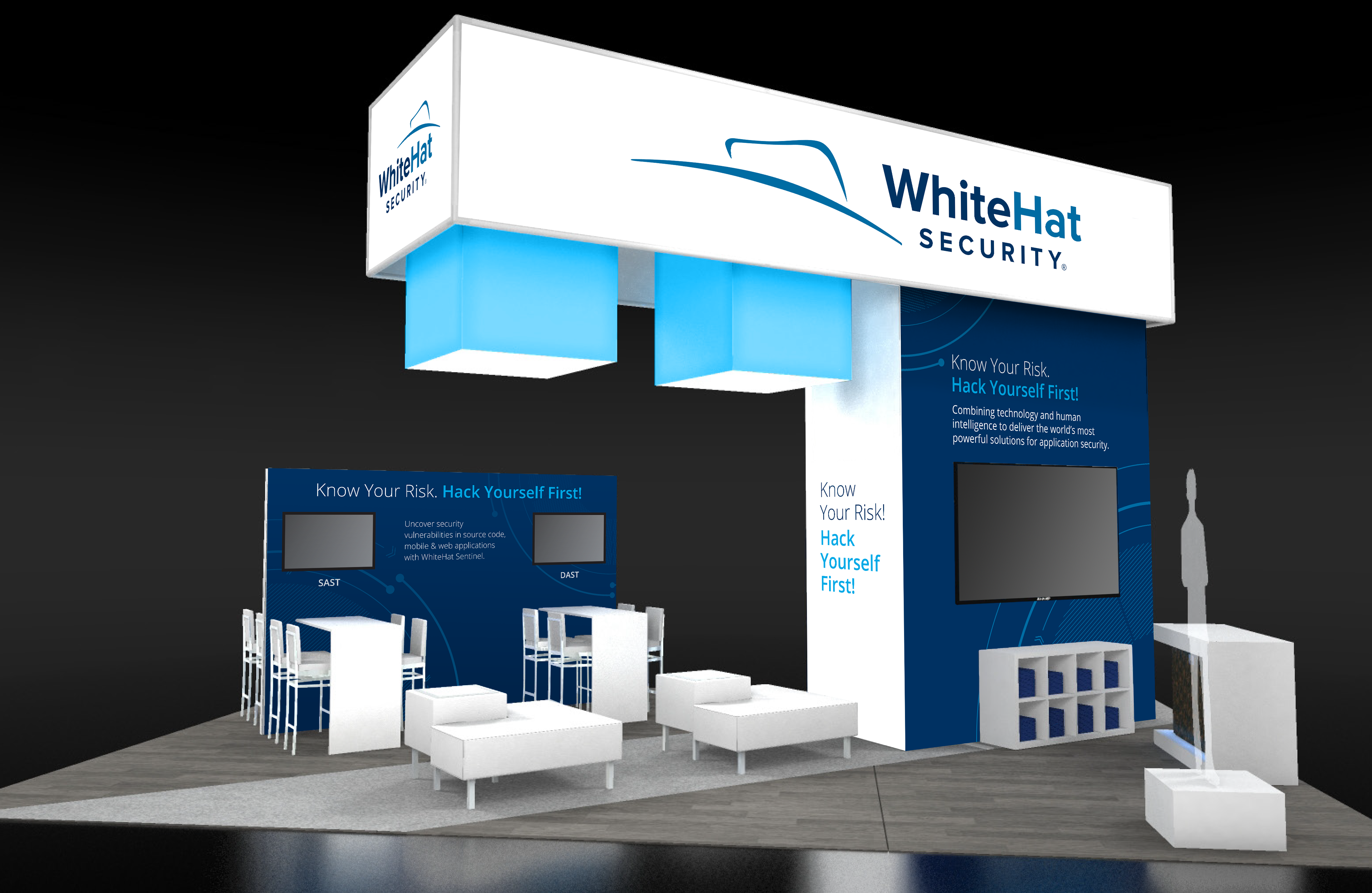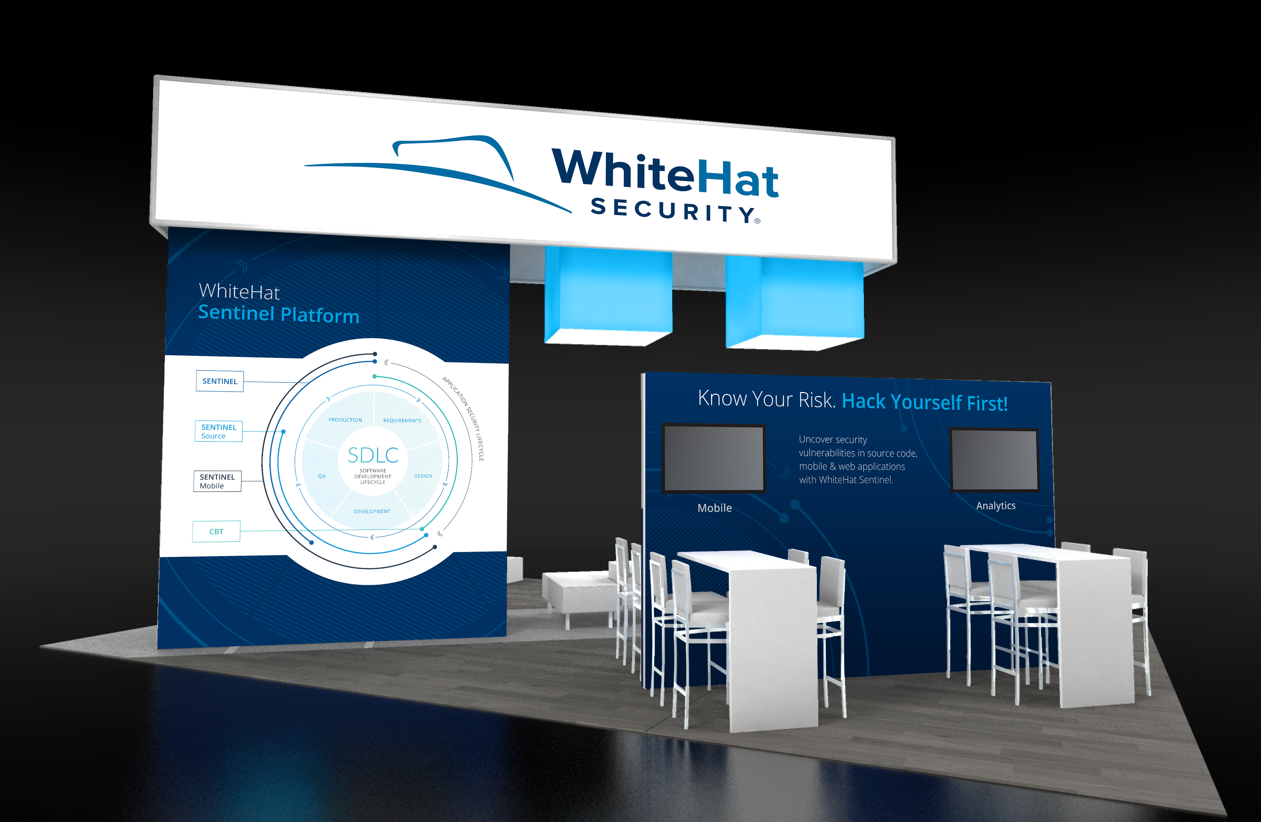 For this highly rated event we worked in tandem with WhiteHat to design their 40’ x 40’ booth along with a variety of print materials.